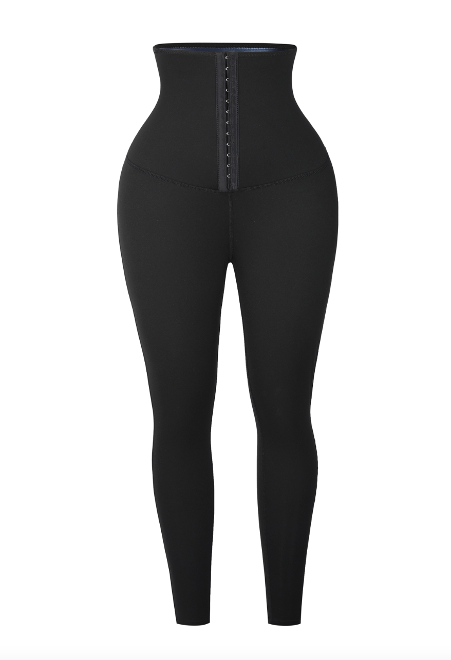 Our High Waist Thermo Sauna Compressing Leggings will flatter your curves, smooth out all unwanted lumps as well as define your legs and control your stomach. Neoprene and PU coated lining will help speed up heat circulation to increase sweat. This high-waist design features adjustable front hook-eye clasp closure to help you adjust the tightness as needed as well as provide the best contour and compression. Our breathable fabric will also help provide comfort to make this shapewear suitable for everyday use.