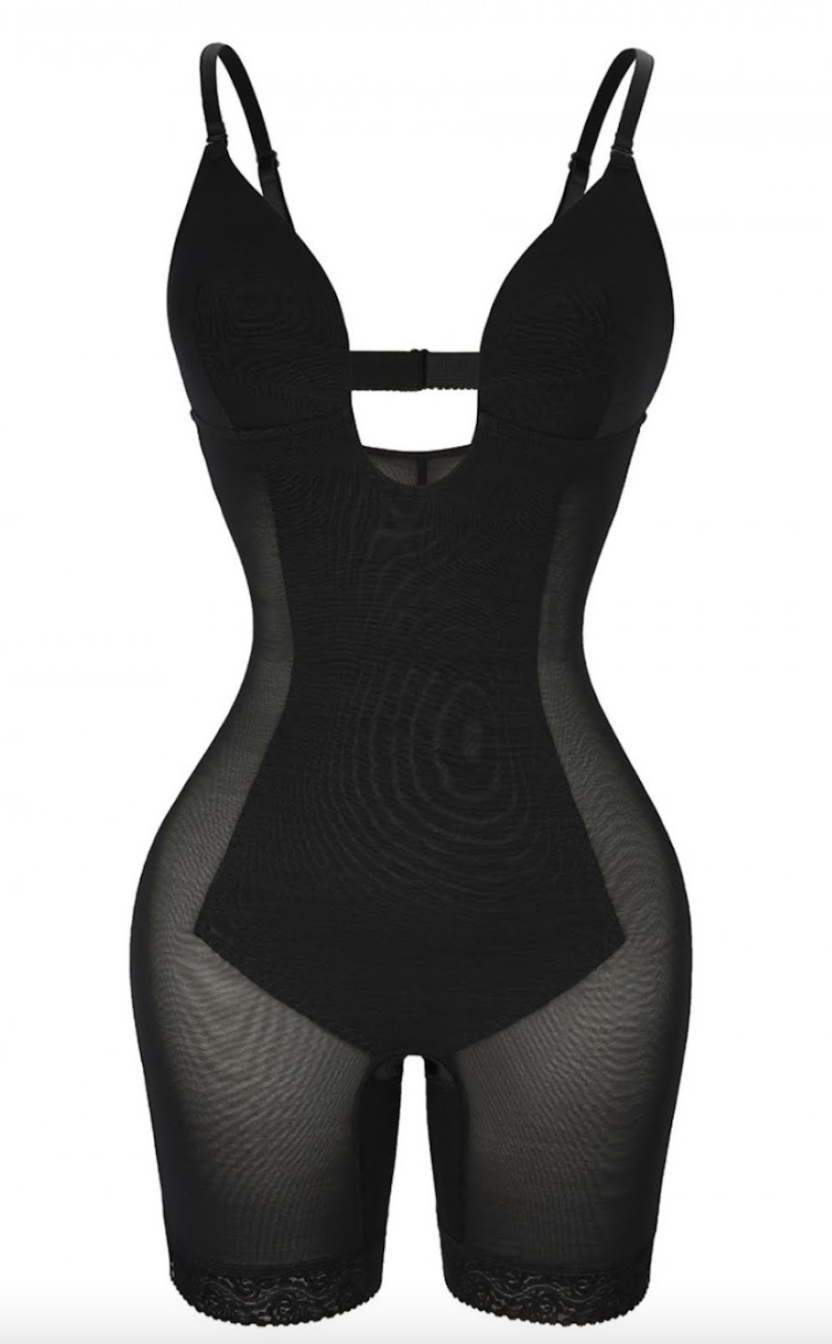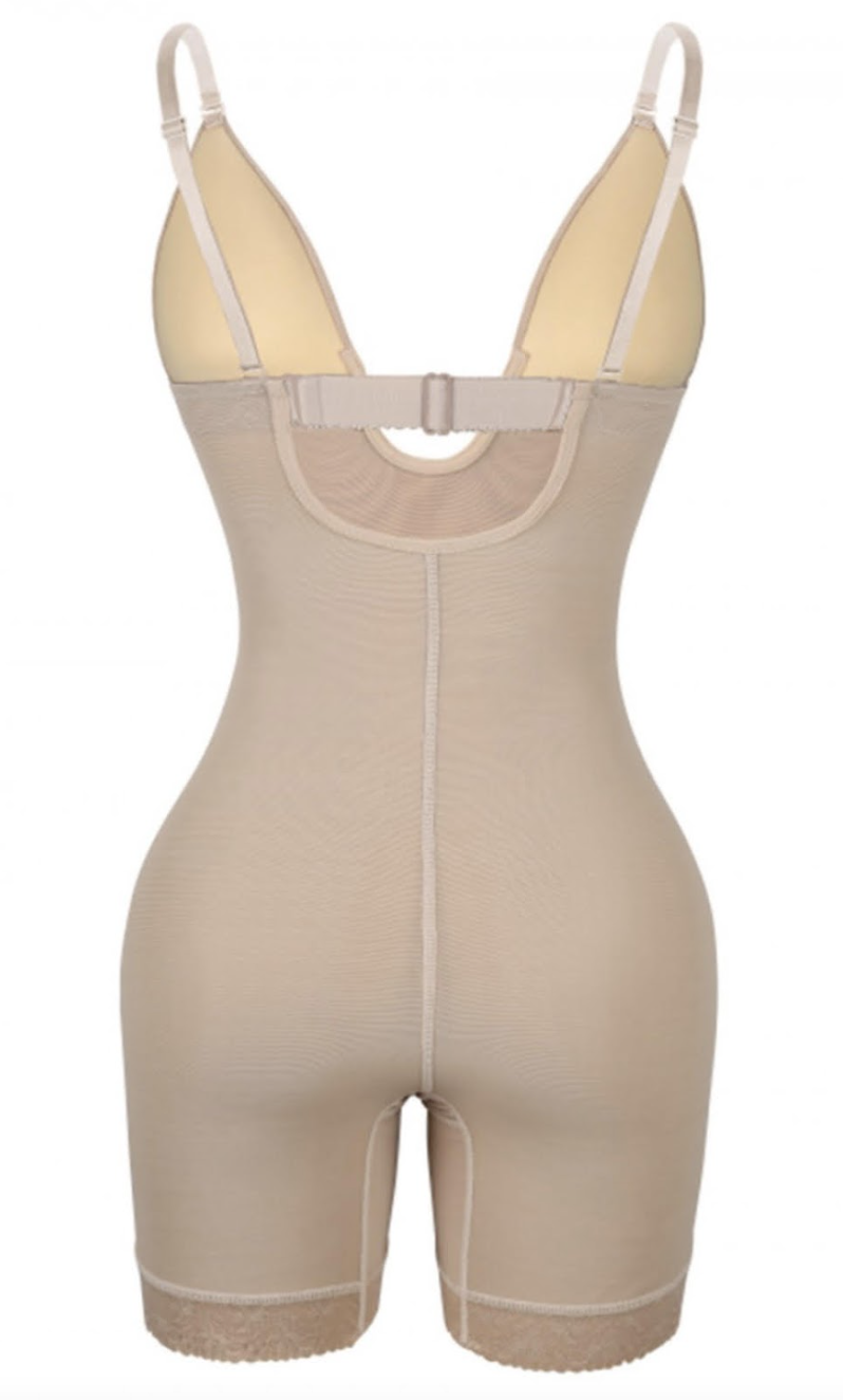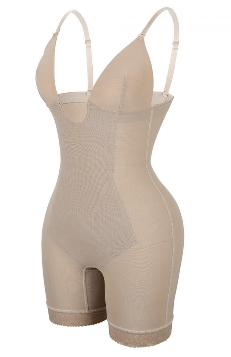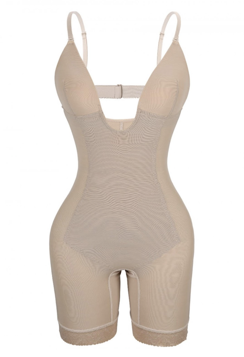 This Mid Thigh-Length Full Body Shaper/Hourglass Bodysuit holds in your core, shapes and lifts your butt and chest and also serves a multi-purpose body shaper. This shapewear features a plunging V-neckline to accommodate low neckline outfit as well as a low-back design for total versatility. This shapewear also features “Sculpting Panels” for a tabletop flat stomach and also gives a comfortable, squeeze-free slimming feel. Made with strong stretchy fabric, this shapewear will give a firm control for your belly and thighs as well as help to smooth love handles.